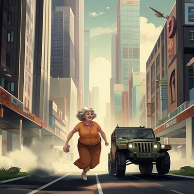 Сегодня в Скипидарске водитель джипа совершил наезд на бабку, которая после успешного перехода дороги на красный сигнал светофора, тщетно пыталась скрыться среди деревьев во внутреннем дворике одной из многоэтажек.