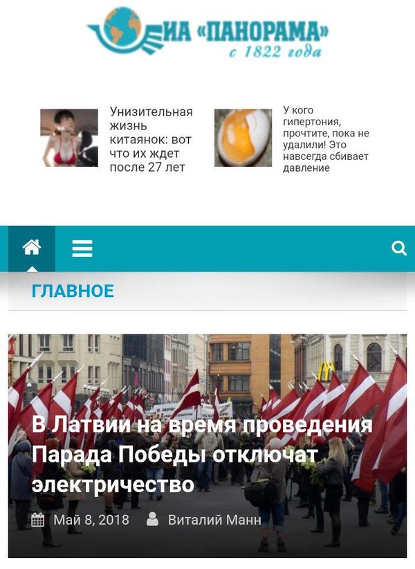 Одно из самых свежих пародийных новостных агентств ИА «Панорама» было запущено 11 декабря 2017 года и сразу же стало заметным явлением в соцсетях и микроблогах, где не задумываясь лайкали да репостили стёбные, реально смешные политические статьи с этого сайта, попадаясь на удочку основателей, которые, очевидно, заливались гомерическим хохотом от происходящего. Кто бы ни основал этот ресурс, замах на лавры англоязычного «The Onion» похвален. Кстати существует реальное, нефейковое ИА «Панорама», но имеет ли оно какое-то отношение к созданию сайта, мне не известно. По заявлению самих шутников, их «Панорама» — старейшее советское и российское информационное агентство, основаное в 1822 году как личная курьерско-новостная служба графа Шеремета фон Рабиновича, национализированное после революции большевиками, единственное осветившее восстание в ГУЛАГе, работавшее в подполье при личном покровительстве маршала Семёна Будённого до 1988 года. И т.д. в т.ж.д.