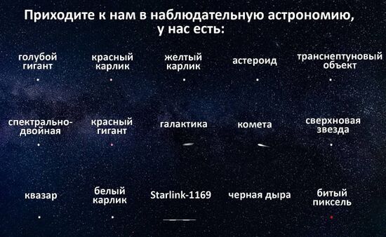 Астрономия — циничная дисциплина, использующая астры для возложения на могилы уничтоженных ею креационизма, плоскоземельства, астрологии и прочих астральных наук. Из-за зловредности практикующие астрономы обладают самым внушительным списком профессиональных заболеваний: затмение, звёздная болезнь, лунатизм, метеоризм, венерические заболевания. Зато не боятся темноты.