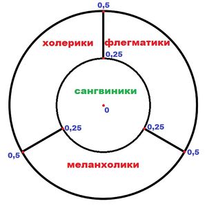 Главная ошибка, которую делают дилетанты в столь непростом вопросе — бездумный распил круга на квадранты через два перпендикулярных диаметра. Будь это так, каждый темперамент был бы представлен как хейтерами, так и индивидами, близкими к идеальному филантропу. Но как же иначе разделить круг ненависти на 4 равные части, чтобы они не были эквивалентны в этом плане?