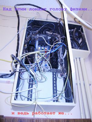 Желтый ящик как любой предмет имеющий большую притягательную и магнетическую силу удерживает на своей орбите влияния устройства с меньшими массами и возможностями. К таким сателитам ящика обычно относяться :Лампочка Ильича , Утюг , Монитор , Стиральная машина , Холодильник , телевизор , чайник и многие другие устройства. Связь ящика со своими спутниками проходит по невидимым нитям которые скрыты в недрах объекта называемыми в науке провода .