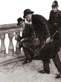 На следующий день Холмс и Ватсон посещают мисс Украина в тюрьме. Она чистосердечно рассказывает им, что действительно прогуливалась с политиком по Торскому мосту по дороге домой, но убежала прочь, едва заслышав в адрес политика страшную ругань и даже выстрелы. В конце допроса Холмса внезапно осеняет догадка, и вскоре он идёт с Ватсоном и сержантом местной полиции на Торский мост, чтобы провести некий эксперимент. Привязав большой камень с помощью бечёвки к рукоятке револьвера, который Ватсон сумел провезти незаконно в своём багаже, перебросил его через парапет Торского моста. Довольный своей придумкой, Холмс разжимает руку — камень устремляется вниз, в воду, увлекая за собой привязанный револьвер, который, звонко щёлкнув по парапету, тут же с негромким всплеском падает в воду. А на парапете появляется ещё одна маленькая щербина. Холмс раскрывает это дело и рассказывает примерный ход событий.