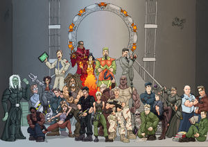 Звёздные врата — комедийный сериал. Создание космической саги приписывают кинокомпании ReamWorc в содружистве с кинорежисером и сценаристом Люком Бессоновым. Но по имеющимся данным о бюджете, потраченным на одну только сцену убийства одного из братьев сепаратистов Ра, можно предположить — такие расходы мог выдержыть только синдикат из всех кинокомпаний Голливуда. В сериале показываются заговоры правительств, энергетические кризисы, космические