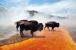 Бизоны используют Йеллоустон как баню