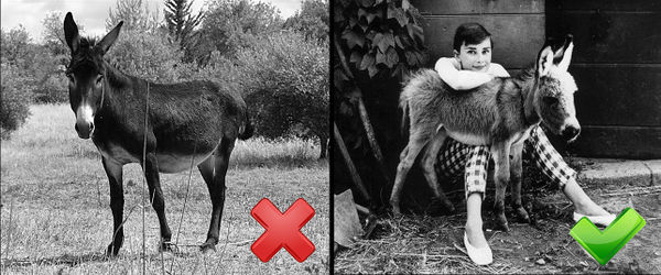 Важную роль играют сопутствующие атрибуты. Так, кадр в котором модель фигурирует сама по себе, представляет меньшую ценность, чем кадр, в котором она находится с компании известной актрисы Одри Хепберн.