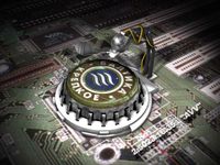 Древнеегипетский микропроцессор на кремниевой подложке с логотипами производителей