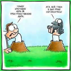 - Виртуальные — когда ваше сознание засунули в суперкомпьютер, программы которого смоделированы под вселенные, которые связаны друг с другом и с оператором. Отличить виртуальные кротовые норы от реальных можно по наличию крота, хотя оператор может предусмотреть и этот вариант развития событий, сотворив виртуального крота для спокойствия скептиков;