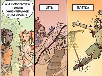 Оружие — то, что заставляет людей орать от ярости, страха и/или боли. Соответственно функцией оружия является причинение осознанного вреда нападающей стороне или превентивного удара по тёмным силам с последующей погоней и их добиванием с целью личного и общественного злорадства сил света и добра.