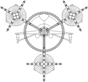 По кольцевой ферме равномерно распределены три кронштейна для крепления подъёмных модулей.