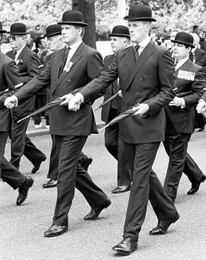И образовалась традиция славная. Коль видит народ, что идёт по тротуару человек с ведром на голове ему уступают. Едет по улице машина с ведром, её пропускают. И наступил порядок, и зажило то государство счастливо и смиренно. В народе даже жест появился приветственный тем, кто с вёдрами синими: увидят такого, тут же руку поднимают, все пальцы кроме среднего прижимают и машут радостно, улыбаются.