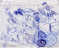 | Неизвестная картина[2] (с подвохом, специально для самых хитрых пациентов) | Ничего. Эта картина настолько абстрактна, что нормальный человек ничего существенного здесь не увидит. Поэтому если обследуемый скажет, что он что-то видит, значит, у него психические галлюцинации. |