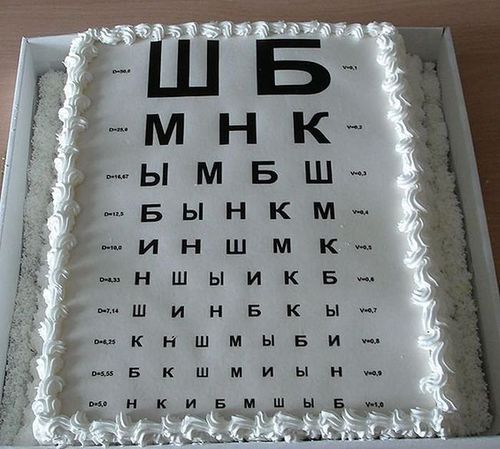 Торт для окулиста. Если употребить в пищу таблицу для проверки зрения, то как же потом без неё обходиться?