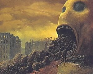 Ну, короче, иду я такой, короче, и вижу: передо мной человек в одежде, а лица нет. И говорит «Дай выпить!». Я думаю «Вот, блин, нажрался, что чудища всякие мерещатся…» и ему в ответ: «Да пошёл ты!» И он, короче, реально куда-то пошёл. Вернулся с какими-то вообще адскими зверскими мутантами, по сравнению с которыми он… ну не знаю… няша. И они мне всей толпой говорят: «Дай выпить!». А я им: «Ну реально, ребята, ну войдите в мое положение, ну нет у меня столько бухла, ну реально…». А он таким чётким, ледяным голосом заявляет: «Я вначале для себя для одного просил, а ты меня послал за друзьями сходить. Так что сам виноват». Я, короче, такой хватаю рацию и зову своих друзей, чтобы бухла принесли. Так вот, мутанты выпили обе канистры водки на девятерых, начали водить хороводы и петь частушки. Я запомнил только эту: