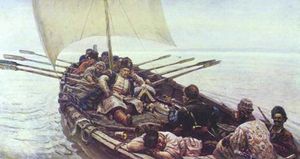 Однажды она перенеслась в 1670 год и познакомилась там со Стенькой Разиным. Он взял ее с собой кататься по Волге. Про этот эпизод есть известная народная песня «Из-за острова на стрежень», но Раневскую там почему-то называют княжной. И вот, Стенька Разин, «сам веселый и хмельной», просит ее рассказать что-нибудь интересное, на что она отвечает: