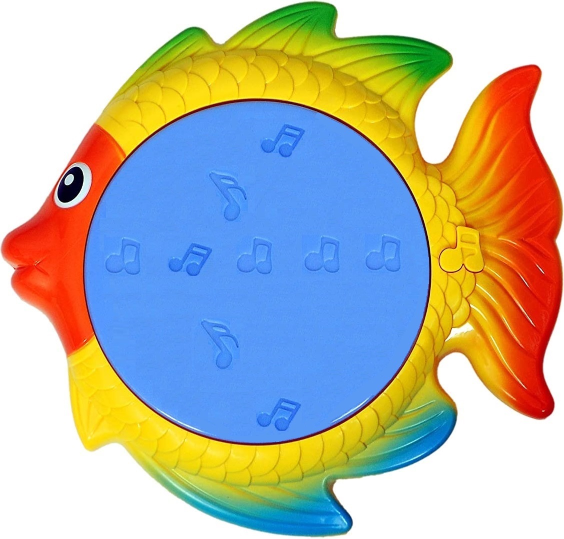 Золотая рыба-бубен. Белая линия и боковые плавники из нот.