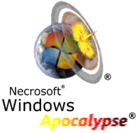 - В Windows Apocalypse будет абсолютная защита от нелицензионного использования. После первой установки дистрибутив уничтожается. А после попытки создать образ уничтожается системный блок и всё живое в радиусе пяти метров. Аналогичное действие происходит при вводе любого бранного слова после слов Билл Гейтс, Necrosoft или Windows.